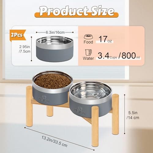 UPSKY Elevated Dog Bowls – 27oz Stainless Steel Anti-Spill Set with Wooden Stand, Double Raised Bowls for Small/Medium Dogs to Reduce Neck Strain & Improve Digestion