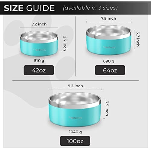 BAEKYO Dog Bowls Small Sized Dogs-Medium Sized 1.2l/42oz Double Layer Stainless Steel Outdoor Dog Water Bowl,Puppy Insulated Food Bowl,with Non-Slip Bottom and 1pc 8oz Food Scoop (Blue, 42 oz)