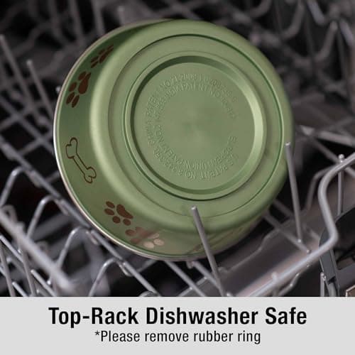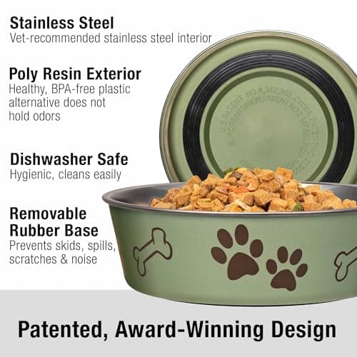 Loving Pets Bella Dog Bowls- Stainless Steel Dog & Cat Bowls - Spill Proof Dog Food Bowl, Cat Bowl, Puppy Essentials & Pet Supplies Great for Home & Travel (Medium 20-35 lbs, Artichoke)