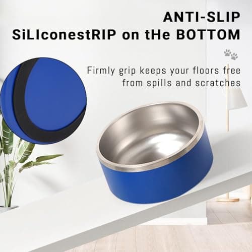 Loving Pets Bella Dog Bowls- Stainless Steel Dog & Cat Bowls - Spill Proof Dog Food Bowl, Cat Bowl, Puppy Essentials & Pet Supplies Great for Home & Travel (Medium 20-35 lbs, Blueberry)
