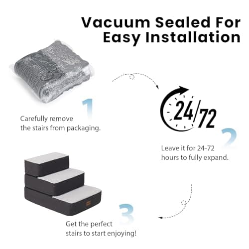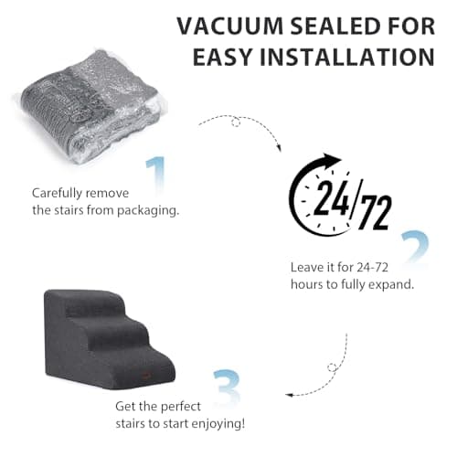 yofit Doggy Steps - Non-Slip 3 Steps Pet Stairs for Cats and Dogs, Foldable Plastic with Washable Carpet Holds Up to 50 lbs (Dark)