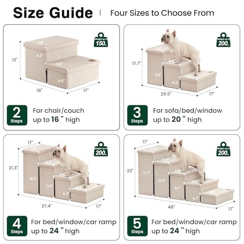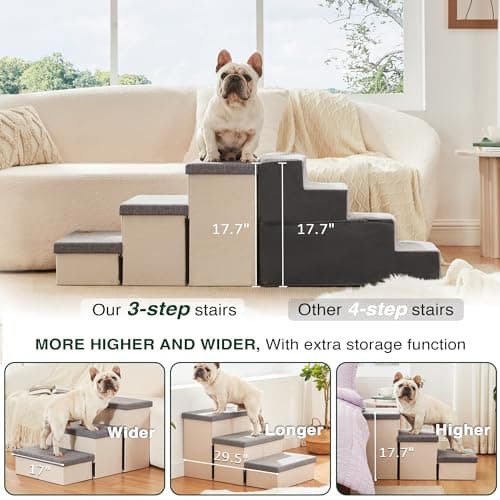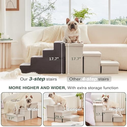 ![PETEPELA Cat Dog Stairs for Bed, Pet Steps for Small Dogs and Cats, Portable Heavy-Loaded [Up to 120 lbs] Dog Steps with Storage Box 3-Step to Couch, Doggie Car Ramp for Older Dogs](/essentials/_next/image?url=https%3A%2F%2Fm.media-amazon.com%2Fimages%2FI%2F41vgI2w-XeL._SL500_.jpg&w=3840&q=75)