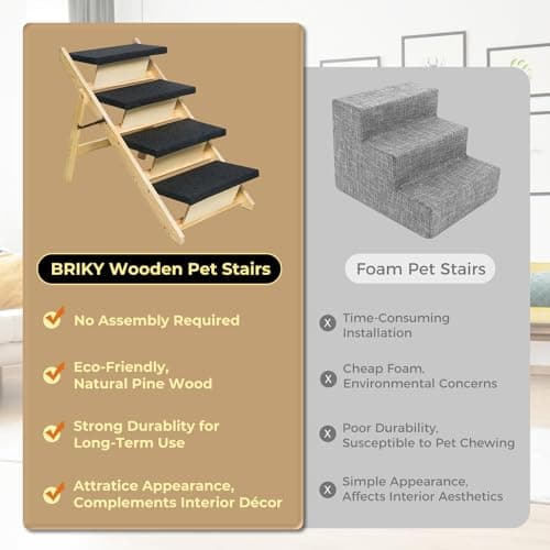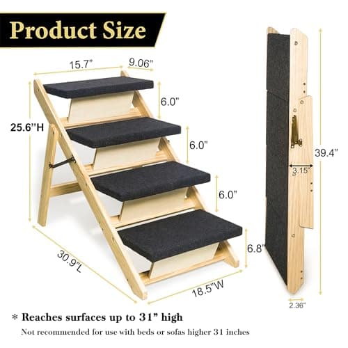 BRIKY 2-in-1 Dog Stairs/Ramp with 4 Steps, Foldable Dog Stairs for High Beds Cars Couch, Durable Wooden Pet Stairs for Small Medium Large Dogs, No Assembly Required
