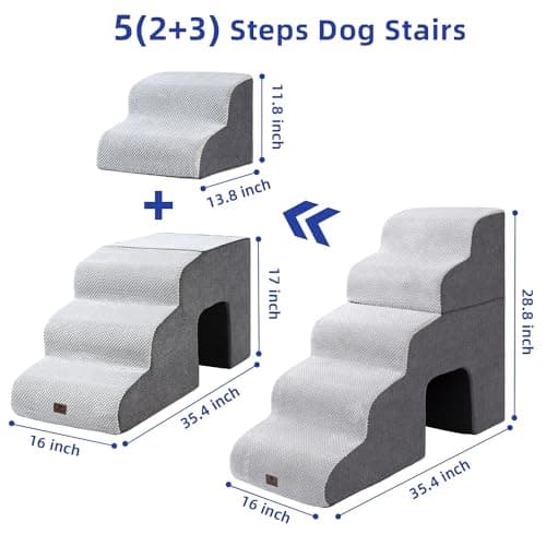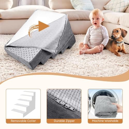 Vfrog Dog Stairs for Small Dogs,17.5" H,4-Step Dog Steps Ramp for Bed and Couch with High Density Foam,Non-Slip Pet Steps for Dogs and Cats,Pet Stairs with a Washable Cover,Grey