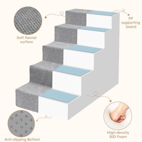 Best Pet Supplies Dog Stairs & Steps - Foam Steps for Small Dogs & Cats, Non-Slip Indoor Balanced Pet Step Support, Dog Ramp, No Assembly, Lambswool, 5-Step (22.5-inch Height)