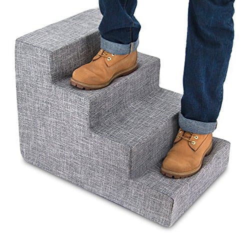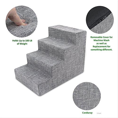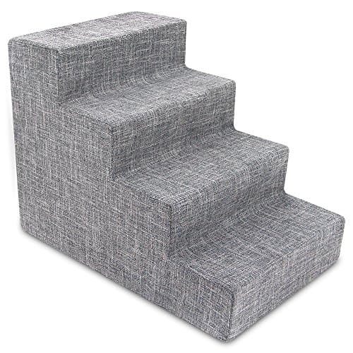 Best Pet Supplies Dog Stairs & Steps - Foam Steps for Small Dogs & Cats, Non-Slip Indoor Balanced Pet Step Support, Dog Ramp, No Assembly, Ash Gray Linen, 4-Step (18-inch Height)