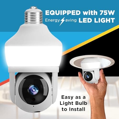 Light Bulb Security Camera Wireless Outdoor Indoor, 5G&2.4G WiFi Security Cameras with Patrol Function, AI Human Detection, Motion Tracking, Two-Way Talk, Color Night Vision, Alarm, 24/7 Recording