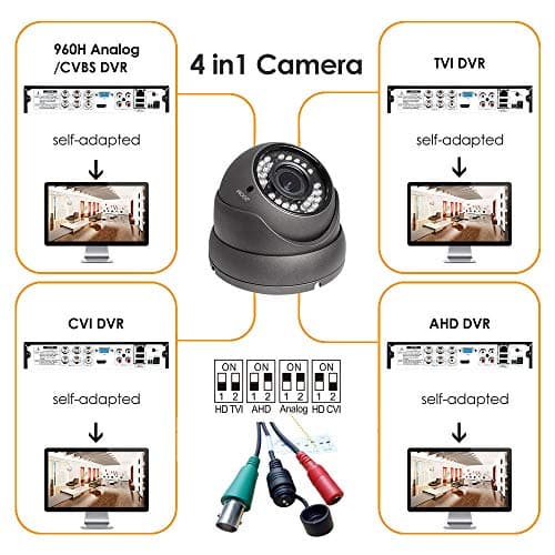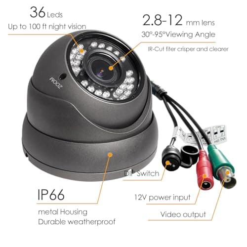 Analog CCTV Camera HD 1080P 4-in-1 (TVI/AHD/CVI/CVBS) Security Dome Camera Outdoor, 2.8mm-12mm Manual Focus/Zoom Varifocal Lens, Weatherproof Metal Housing 36 IR-LEDs Day & Night Monitoring (Grey)