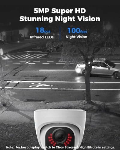 Amcrest 5MP POE Camera, Outdoor Vandal Dome Security POE IP Camera, 5-Megapixel, 98ft NightVision, 2.8mm Lens, IP67, IK10 Resistance, MicroSD 256GB (Sold Separately), Cloud, NVR (IP5M-D1188EW-AI-V3)