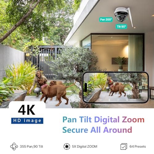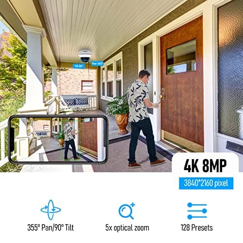 JideTech Outdoor 4K PTZ POE Camera, 8MP IP Dome Camera with 5X Optical Zoom, IR Night Vision Human/Motion Detection, Built in 2-Way Audio, Pan/Tilt, SD Card Slot