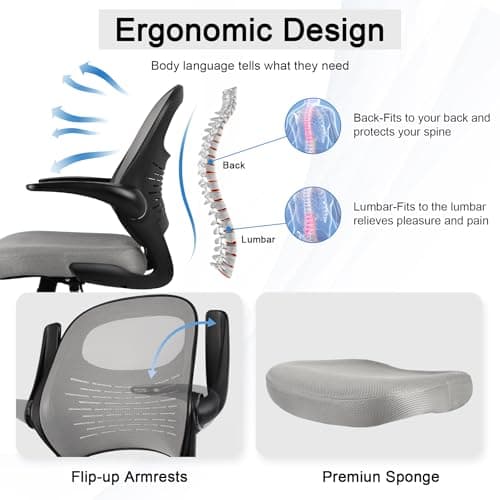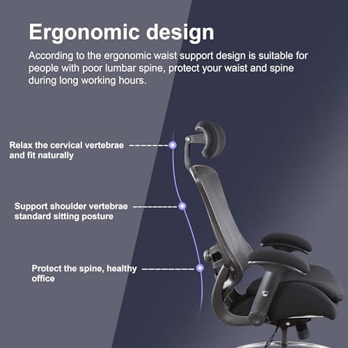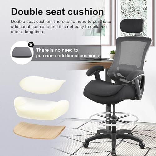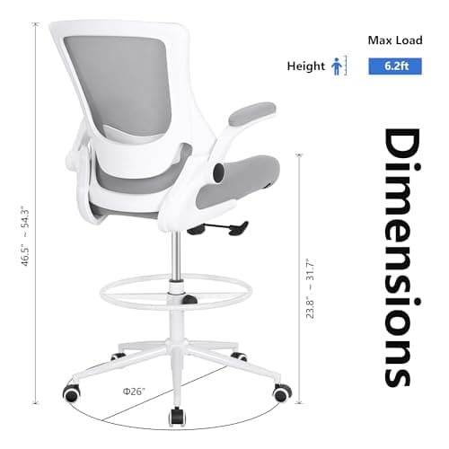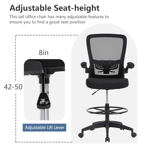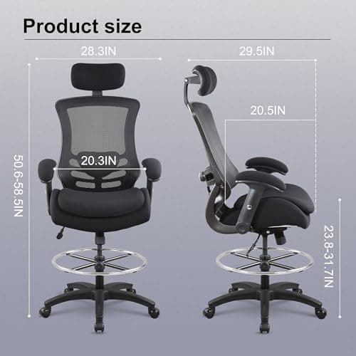 Ergonomic Office Chair, Tall Drafting Desk Chair with Lumbar Support, Flip-Up Armrests, Adjustable Foot Ring, Standing Desk Chair, High Computer Chair