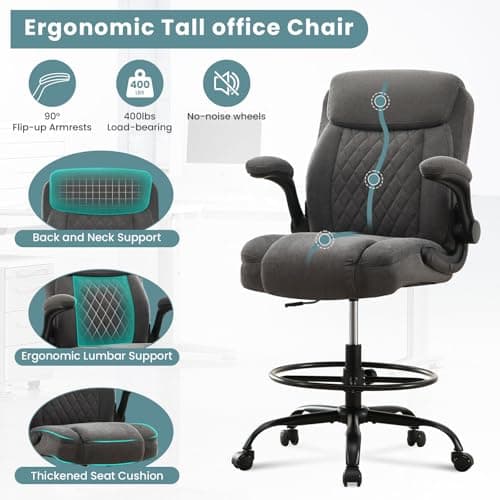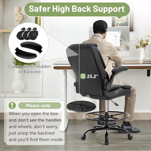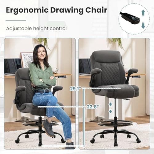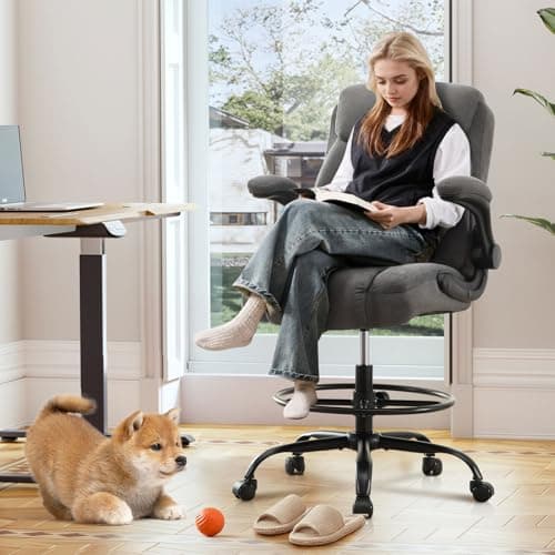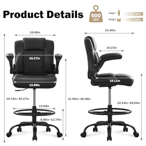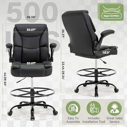BOLISS Drafting Office Chair 400lbs High Back Wide Standing Desk Chair Comfortable with Flip up Armrests Lumbar Support Adjustable Big Footrest Ring(Black)
