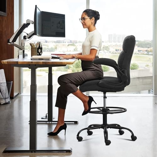 The drafting-chair category usually splits first by work-surface height and support layout. Buyers often move between standing desk picks, counter-height chairs, and tall workstation setups before they narrow the shortlist by arm style or back support.