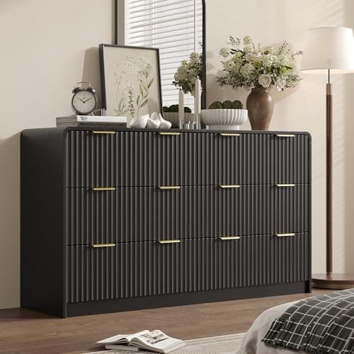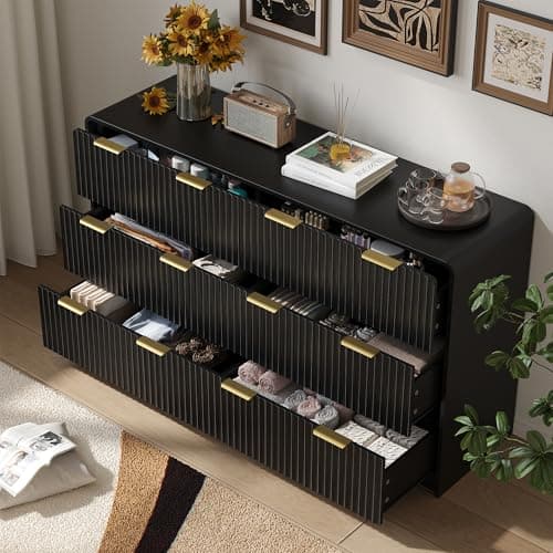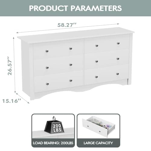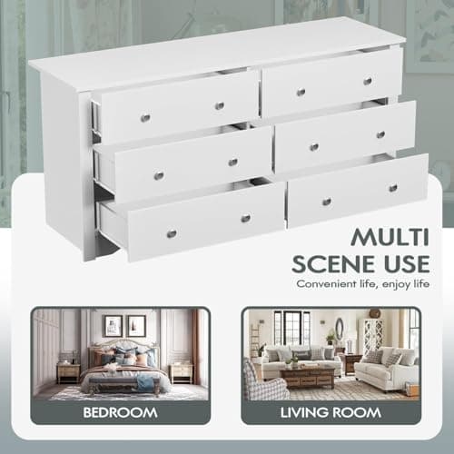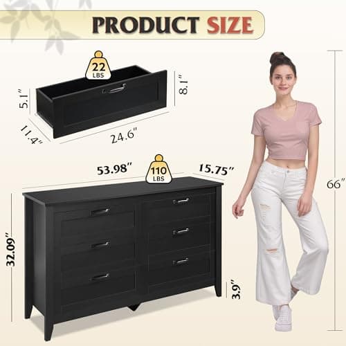 Six drawers often sit in the middle of the category: broader than 5-drawer options, but usually easier to place than 7-8 drawer layouts. If the real issue is shape rather than count, compare with horizontal double-wide dressers too.
