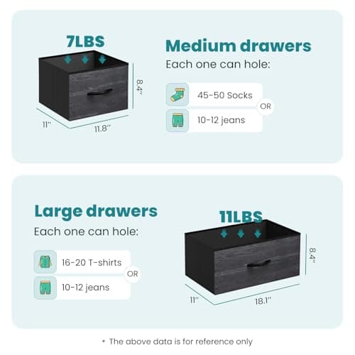 Fabric-drawer models usually trade some rigidity for lighter carrying weight and simpler assembly. That makes them a natural comparison against wood and MDF builds on one side and fabric storage towers on the other.