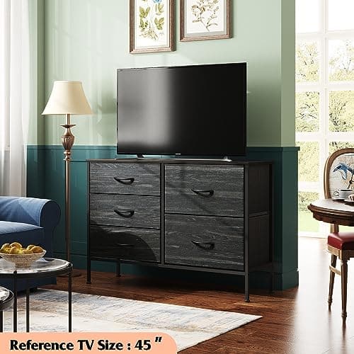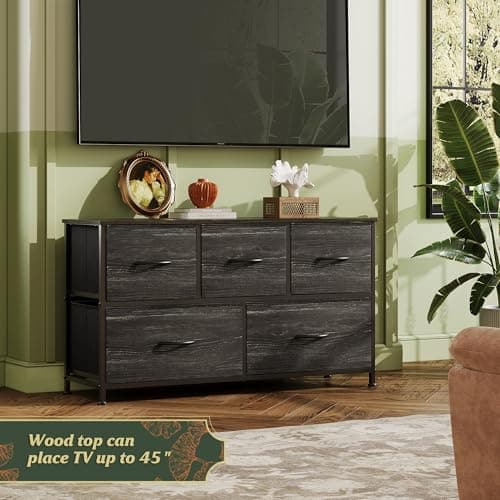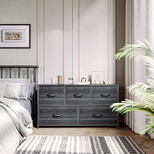 WLIVE Dresser for Bedroom with 5 Drawers, Wide Chest of Drawers, Fabric Dresser, Storage Organizer Unit with Fabric Bins for Closet, Living Room, Hallway, Dark Grey