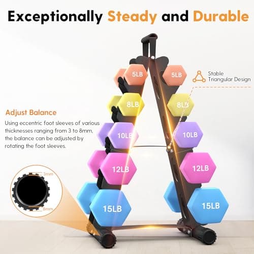 A comprehensive comparison of the 50 best Best dumbbell rack for Home Gym products. Top brands include Josmimic, Jusgym and CAP Barbell. Based on our analysis, the highly-rated option is DF5200-8 Pair Vertical Dumbbell Rack by Deltech Fitness. These rankings are based on real-world performance, user reviews, and value for money.