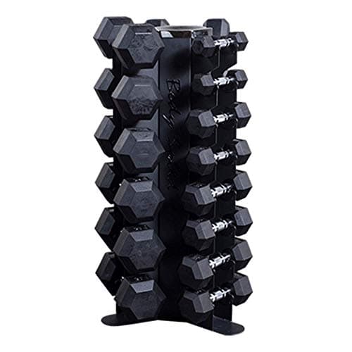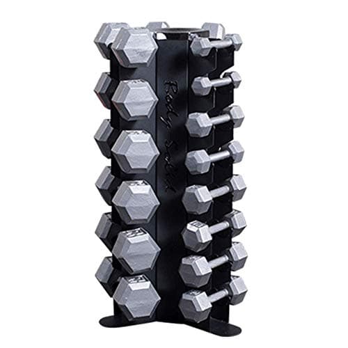 Body-Solid 3-Side Vertical Dumbbell Rack for 5-50 lb. - Compact, Space-Saving Weight Holder for Home Gym, Holds upto 10 Pair of Dumbbells with Medicine Ball Storage Tray