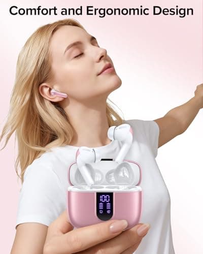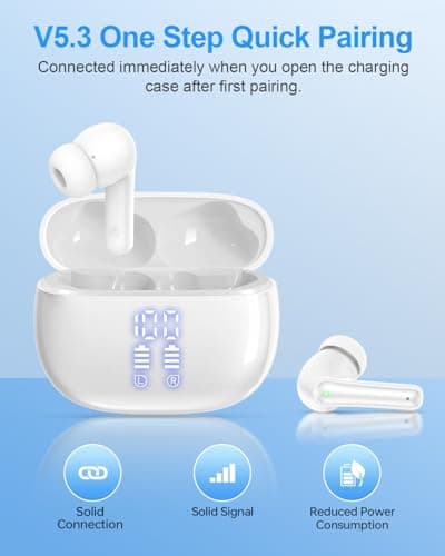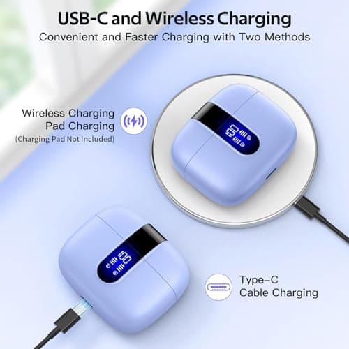 TAGRY Bluetooth Headphones True Wireless Earbuds 60H Playback LED Power Display Earphones with Wireless Charging Case IPX5 Waterproof in-Ear Ear buds with Mic for TV Smart Phone Laptop Computer Sports