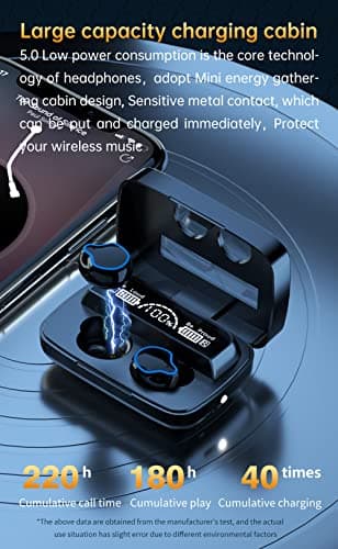 TAGRY Bluetooth Headphones True Wireless Earbuds 60H Playback LED Power Display Earphones with Wireless Charging Case IPX5 Waterproof in-Ear Ear buds with Mic for TV Smart Phone Laptop Computer Sports