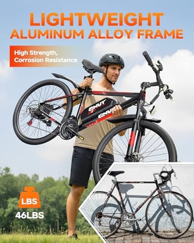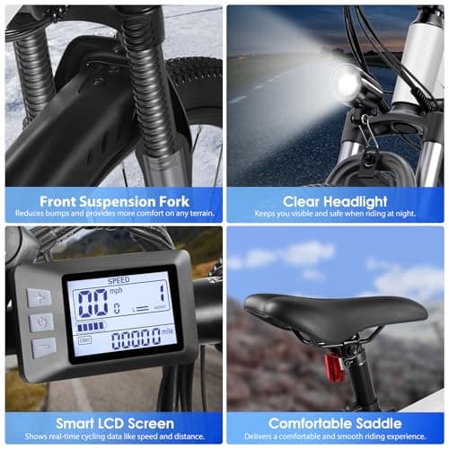 Jasion EB5 Electric Bike for Adults with Peak 500W Brushless Motor, 40Miles 20MPH Commuting Electric Mountain Bike with 360Wh Removable Battery, 7-Speed, 26" Tires and Front Fork Suspension