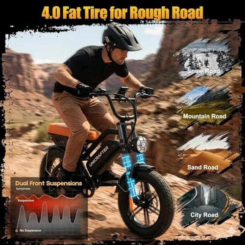 TST Electric Bike for Adults, 1500W Peak Motor Ebike with 48V 15Ah Built-in Battery, 60 Miles Range 28 MPH Electric Bike, 20" All-Terrain Fat Tire E Bike with Hydraulic Suspension