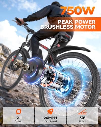 Hoverfly OUREA 26" Electric Bike for Adults, 750W Peak Motor Mountain Ebike, 20MPH Up to 40 Miles, UL2849 Certified, 7-Speed, Removable Battery, Shock Absorber, Fat Tire Commuter E-Bike
