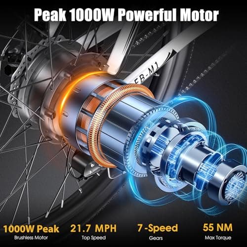 Loeook Electric Bike for Adults, 26" Ebike with 1000W Peak Motor, 21.7MPH 50Miles Electric Mountain Bike with 48V Removable Battery, 7-Speed, Front Suspension, LCD Display, UL 2849 Certified