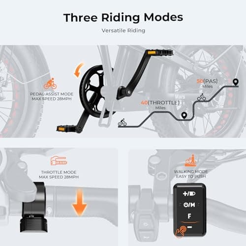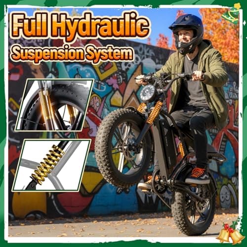 TST Electric Bike for Adults, 1500W Peak Motor Ebike with 48V 15Ah Built-in Battery, 60 Miles Range 28 MPH Electric Bike, 20" All-Terrain Fat Tire E Bike with Hydraulic Suspension