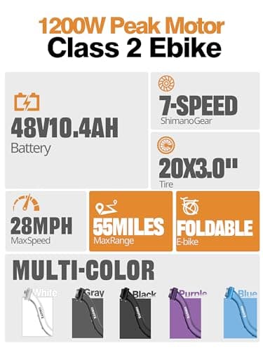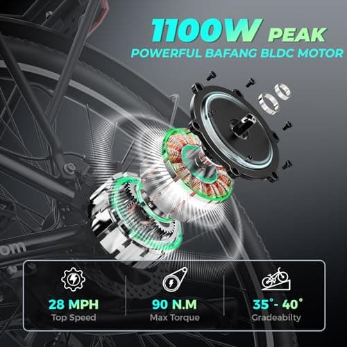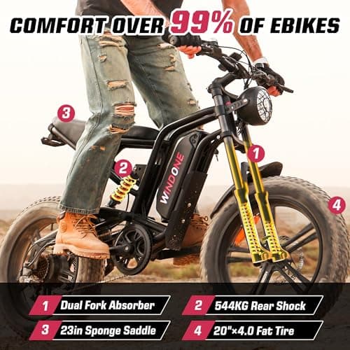 Elecby V100 1500W Peak Electric Bike for Adults, 28MPH 48V 13Ah Removable Battery, 60 Mile Range, 16"x4.0" Fat Tire, 7-Speed E-Bike with Dual Suspension – Commuter Ebike for Men & Women