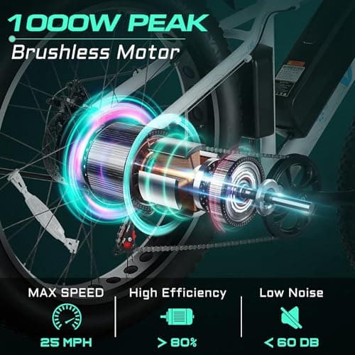 Loeook Electric Bike for Adults, 1000W Peak 25MPH 60Miles Ebike,48V 13AH Battery Electric Mountain Bike, 26" x 4'' Fat Tire Electric Bicycle with Rear Rack, Fenders, 7 Speed, UL 2849 Certified