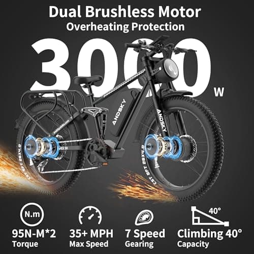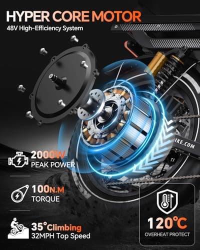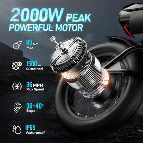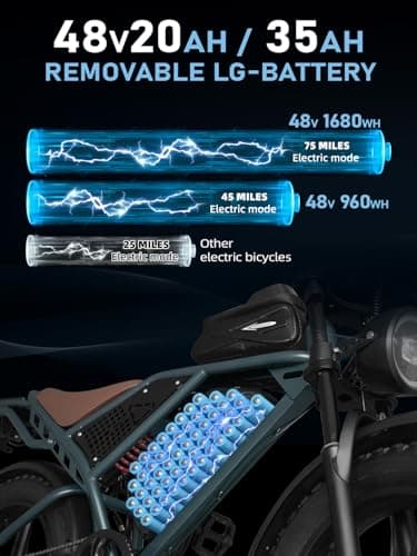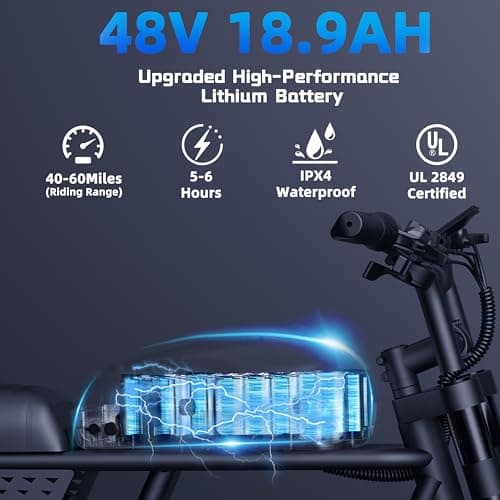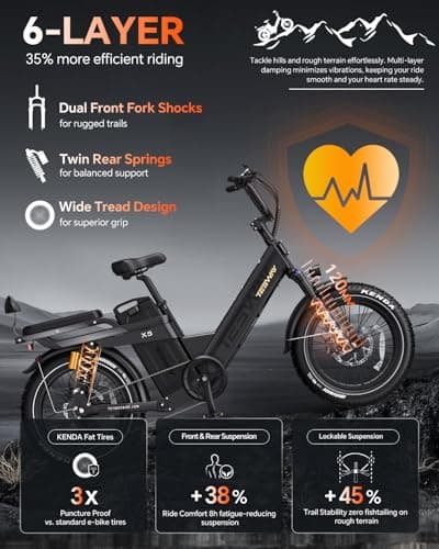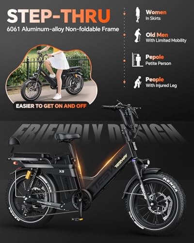 TESWAY 52V&48V 2000W Single Motor Ebike 200Miles Longest Range Electric Bike for Adults, 20" Fat Tire Full Suspension E Bike 2 Seaters for Off-Road,Commute,Travel (Black, 48, Volts)