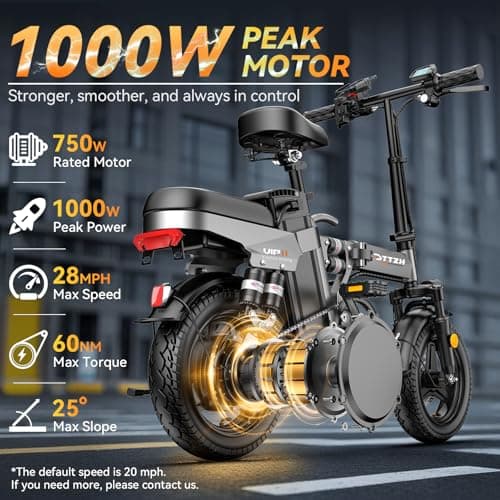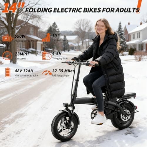 Folding Electric Bike for Adults, 500W Motor 25MPH & 35Miles Long Range, 14” Mini E-Bike with Removable 48V 576Wh Battery, UL Certified Electric Bicycle for Commuting & Teens