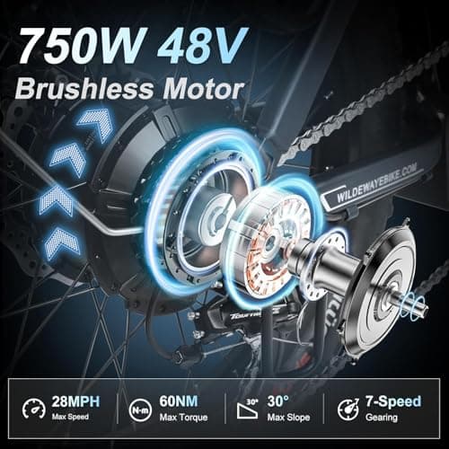 Hoverfly OUREA 26" Electric Bike for Adults, 750W Peak Motor Mountain Ebike, 20MPH Up to 40 Miles, UL2849 Certified, 7-Speed, Removable Battery, Shock Absorber, Fat Tire Commuter E-Bike