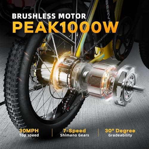 Nexaglide Electric Bike for Adults, 1500W E-Bike for Adults,3 Modes Electric Dirt Bike, 20" Fat Tire Adult Electric Bicycle with 48V 18.9AH Battery, 7 Speed E-Bikes, LCD Display,Yellow