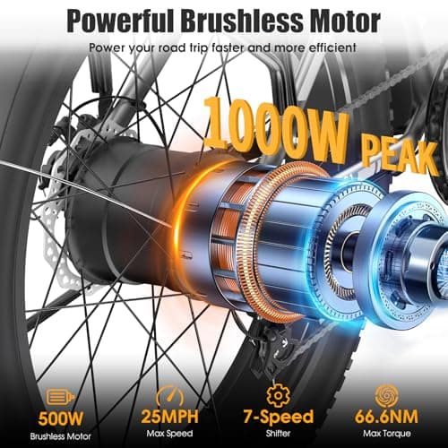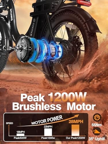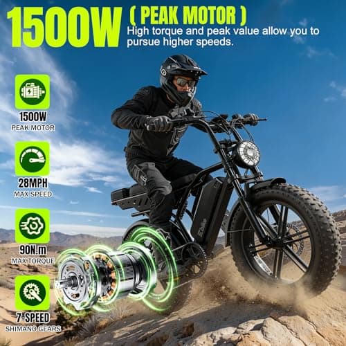 TS TST GRP LLC Electric Bike for Adults, 1500W Peak Ebike, 48V 15AH Waterproof Removable Battery, 7 Speed, 28 MPH Max, 20" Electric Off-Road Bike, UL 2849 Certification