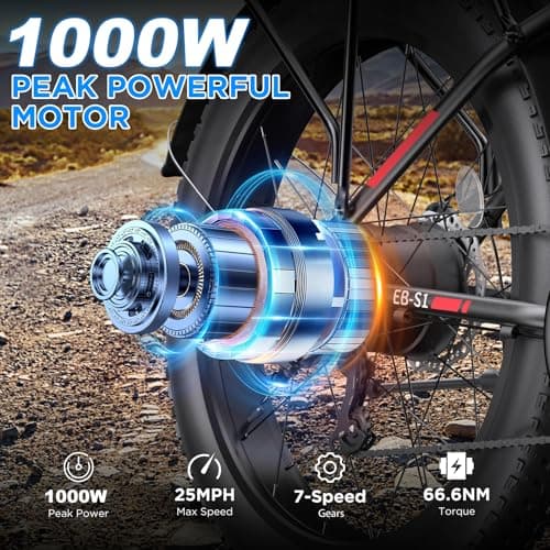 Funhang Electric Bike for Adults, 1000W Peak Ebike, 25MPH 60Miles Electric Mountain Bike, 26" Fat Tire Electric Bicycle with 48V 13AH Battery, Front Suspension,7 Speed, Rear Rack, UL 2849 Certified