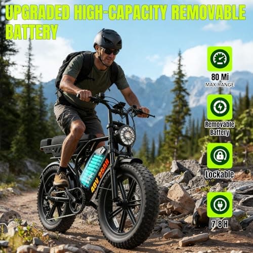 Wallke H7 Ultra Premium 4000W Ebikes for Adults, 55Ah 2640Wh 180 Mile Long Range Electric Bike, 37MPH Fast Ebike, 2-in-1 AC/Solar-Ready Battery & AC/DC, Torque Sensor, 20x4 inch Fat Tire E Bike