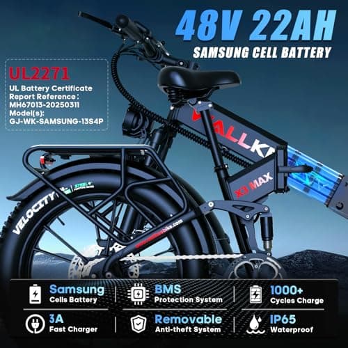 Vivi M026TGB Electric Bike 26" Electric Bike for Adults, Peak 750W Folding Electric Mountain Bike, 48V Removable Battery Ebike, 21 Speed Ebike, Top 22 Mph, Up to 50 Miles, SGS Certified to UL2849