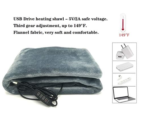 TOHMR USB Heated Blanket/Shawl/Throws, 35"X23" Flannel Heating Cushion Pad Blanket for All Occasions Including Outdoor - 3 Heat Settings and 3-Hour Auto-Off (Gray) AA