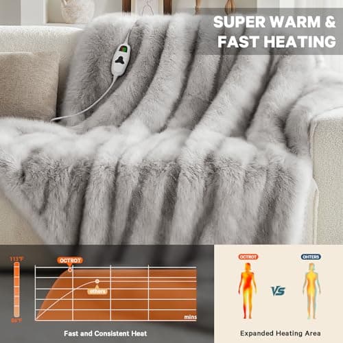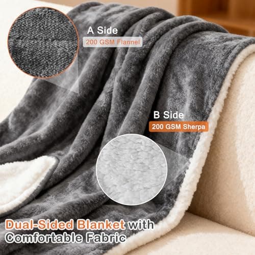 VENTIMI Electric Blanket Heated Throw, 50" x 60" Heated Blanket with 5 Heat Levels & 3 Hours Auto Off, Fast Heating Blankets with ETL & FCC Certification, Grey