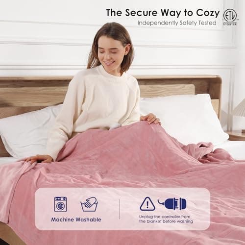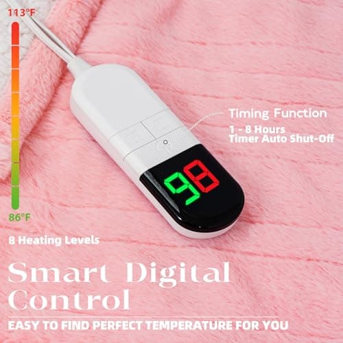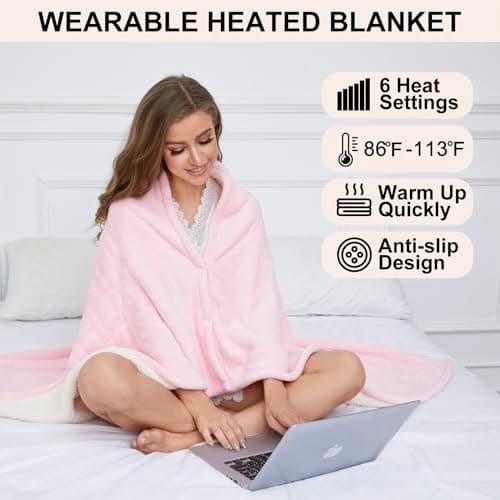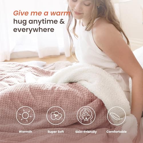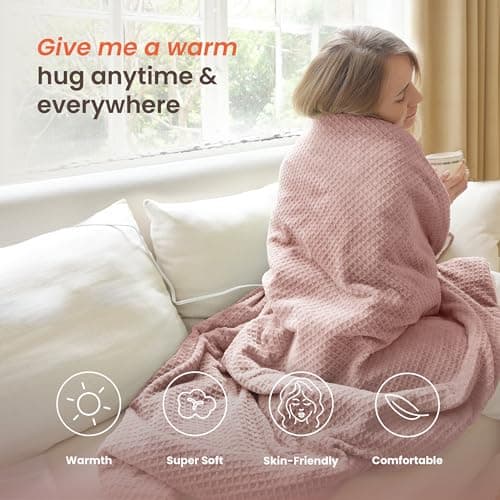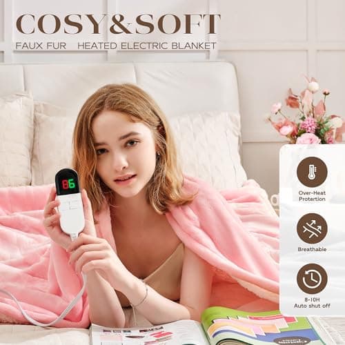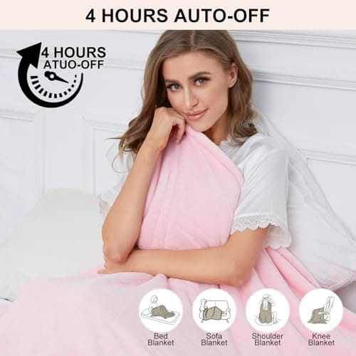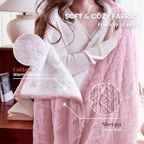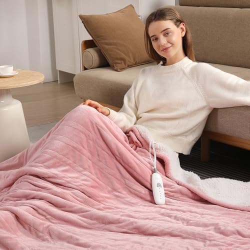 Heating Blanket Heated Throw Blanket 50''X60'' - Electric Throw Pink Ultra Warm Fluffy Electric Blanket for Recliner with 5 Heating Setting & 4 Hour Auto Off, ETL Certified & Overheat Protection
