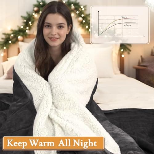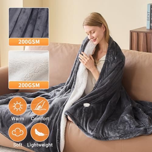Homemate Heated Blanket Electric Throw - 50"x60" Heating Blanket Throw 1/2/4/6/8 Hours Auto-Off 10 Heat Level Over-Heat Protection Flannel Sherpa ETL Certification