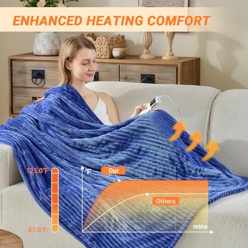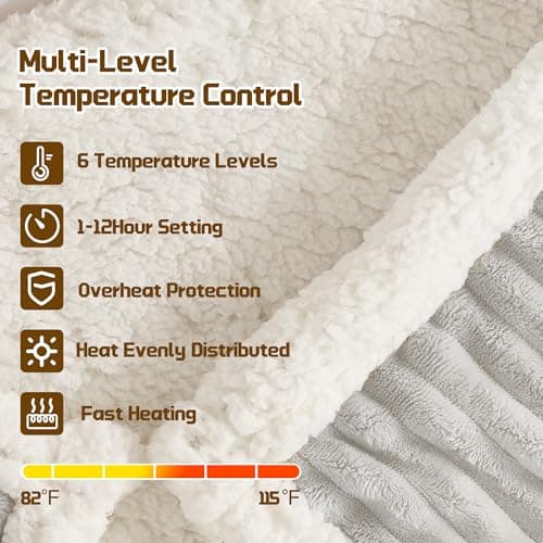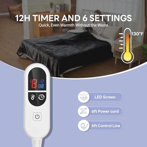Heated Blanket Electric Throw 50"x60" Throw Size, Electric Blanket with 6 Heating Levels and 1-12 Hours Timer Auto Off, Soft Flannel Fleece Fast Heating Blanket, Overheat Protection, Machine Washable