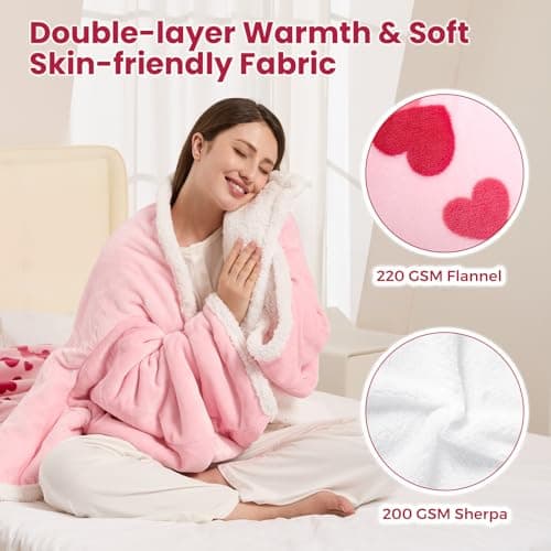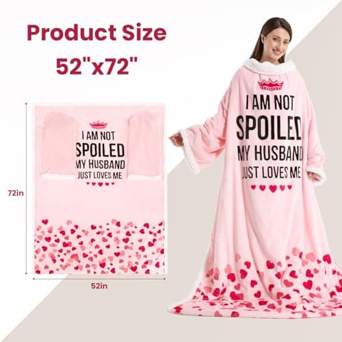 Wearable Heated Blanket for Women, Unique Christmas Birthday Gift for Wife, Electric Throw Blanket with Sleeves, Foot Pocket, Heated Robe for Mom, 3 Heat-Level & Timer, ETL Safe, Spoiled Wife, Pink