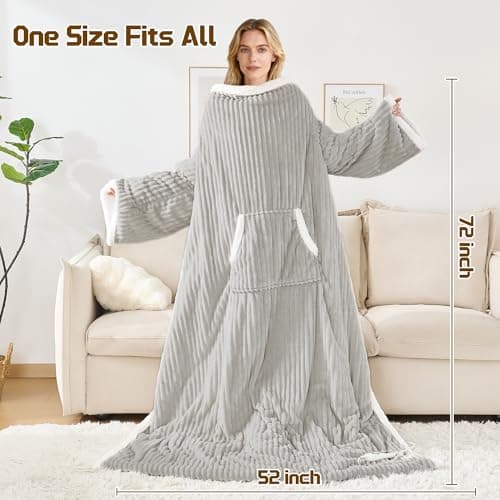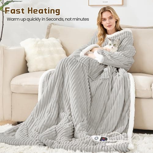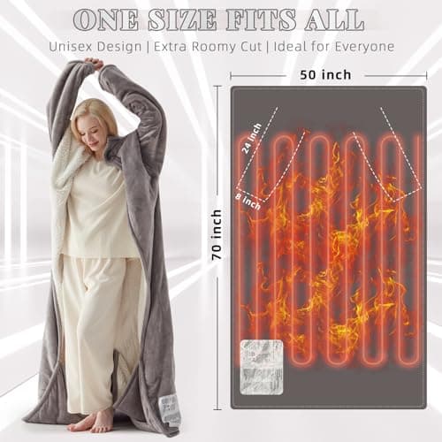 Richtry Electric Blanket Wearable with Foot Pockets & Sleeves, Electric Heated Snuggle Blanket, Flannel & Sherpa Heating Throw with 10 Heat Settings, 1-12 Hours Auto Shut-Off, 50"ร—70", Grey
