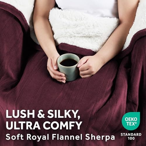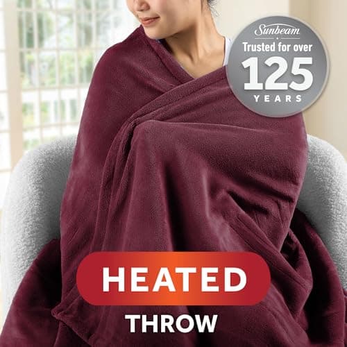 Sunbeam Electric Throw Royal Mink Sherpa Heated Blanket, 4 Heat Settings, 4-Hour Auto Shut-Off, Fast Heating, Luxurious and Ultra Comfy, Cabernet Color, 50" x 60"