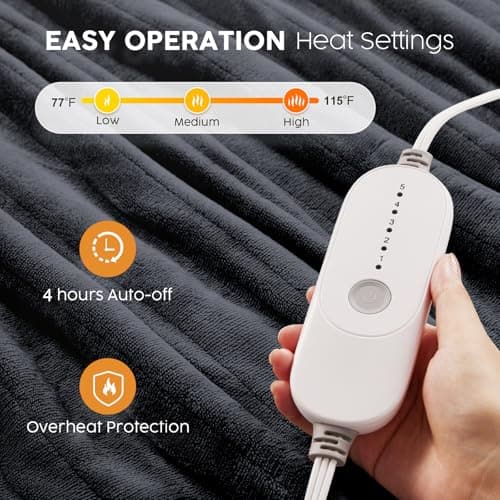 Heated Blanket 50"x60" Electric Throw Blanket with 5 Heat Settings, 10H Auto-Off, Soft Wave Fleece for Couch, Bed & Office, ETL Certified
