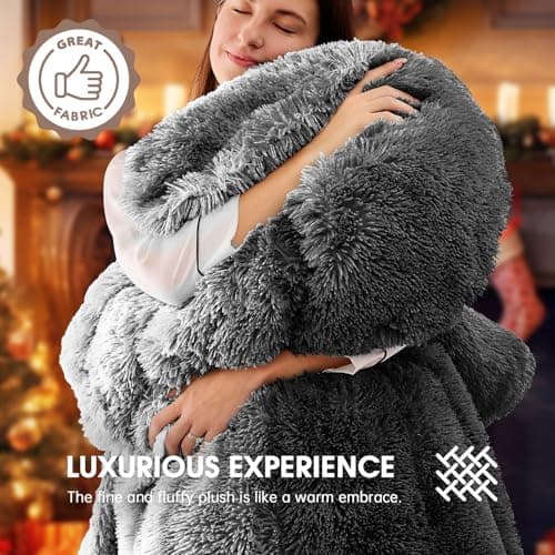 EHEYCIGA Electric Heated Blanket Queen Size Faux Fur, 10 Hours Auto Shut Off 9 Heating Levels Heating Blanket with Dual Control, Soft Warm Heated Blanket Fast Heating Grey, Faux Fur & Sherpa