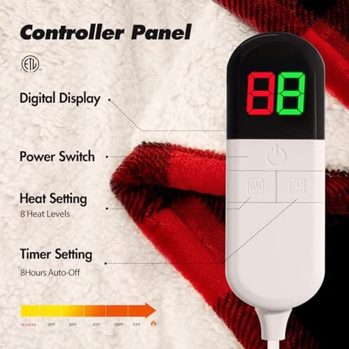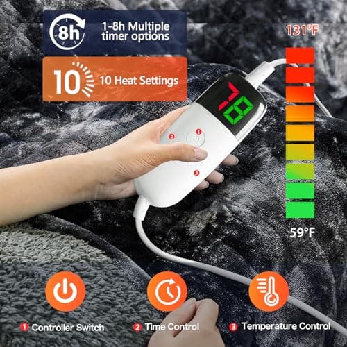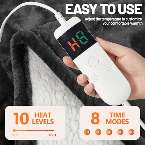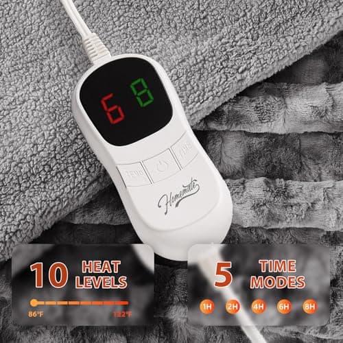 Homemate Heated Blanket Electric Throw - 50"x60" Heating Blanket Throw 1/2/4/6/8 Hours Auto-Off 10 Heat Levels Over-Heat Protection Soft Flannel Sherpa Heater ETL Certification